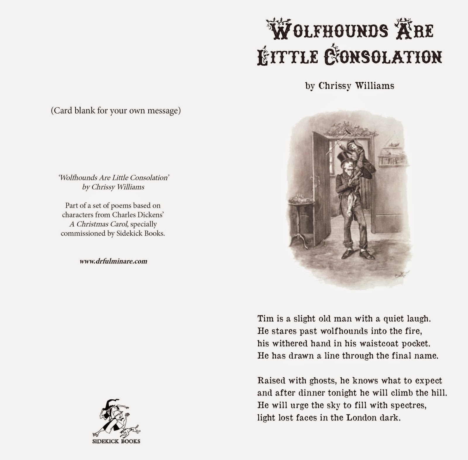 In 2011, we commissioned six splendid poems to print as Christmas cards, starring characters from Charles Dickens’ A Christmas Carol.