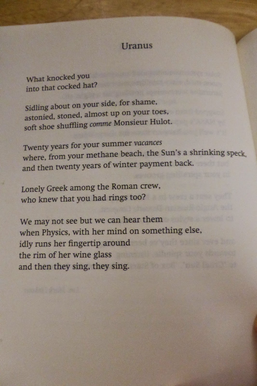 I admit the above quote is an outright fabrication but it’s also totally true! Next year Sidekick will be publishing Laboratorio, an anthology of creative writing by astrophysicists at the Mullard Space Science Laboratory, helmed (and edited) by their poet-in-residence Simon Barraclough. Along with fellow Sidekick collaborator Harry Man, Simon is one of poetry’s biggest space enthusiasts, and his second Salt collection, Neptune Blue, includes a planets sequence. We have asked for – and been granted! – permission to reproduce his ode to the ice giant Uranus as part of our advent calendar.
