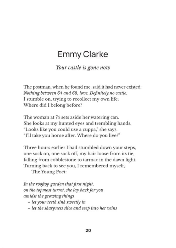 “Enter freely and of your own will!” After a hellish coach ride up a mountain pass, each of our ten poets crosses a threshold – perhaps a little dishevelled. But the master of the castle remains oddly reclusive; is this stop-off or destination, sanctuary or trap? Move through the book as you would a candlelit corridor: every poem here is an unlocked chamber door, behind which lies mirrors, dust, and the temptation of the flesh…